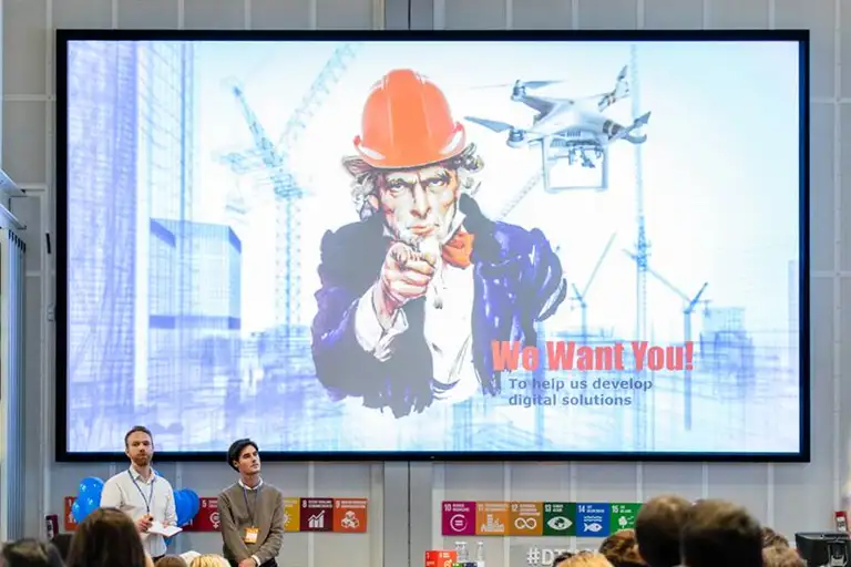Bolig- og Planstyrelsen deltog derfor i Open Innovation X, der havde det overordnede tema, Impact Cities, for at udfordre de digitale talenter til at bruge deres evner til at udvikle løsninger indenfor byggeriet. I alt bød fire virksomheder og organisationer ind med konkrete udfordringer fra den virkelige verden.